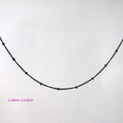This dainty, black ball station chain is made from jewelry grade stainless steel. It can be clasped any length between 30″ to 32″. Pair this chain with a personalized memory locket for a timeless look. Our ball station chains come in silver, gold, black and rose gold finishes and short and long lengths.