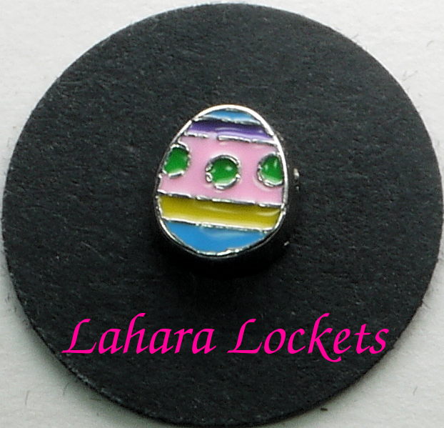 Create an Easter-themed memory locket with colorful Easter eggs, Easter basket, and bunny floating charms.