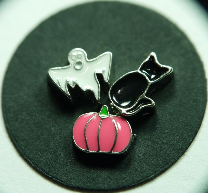 Create a spooky, Halloween memory locket with ghost, witch and bat floating charms.
