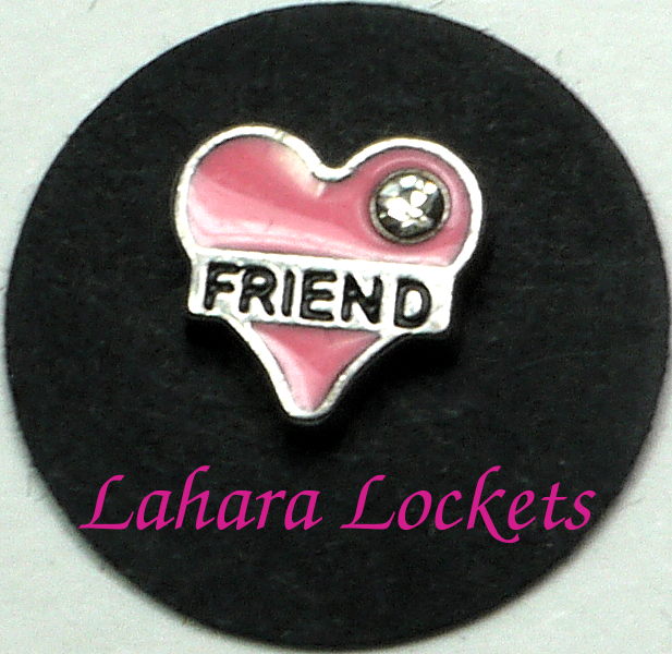 Tell your friend how much she means to you with this pink heart floating charm. This charm will look great in any memory locket as a memento to a friend that has been there through thick and thin.